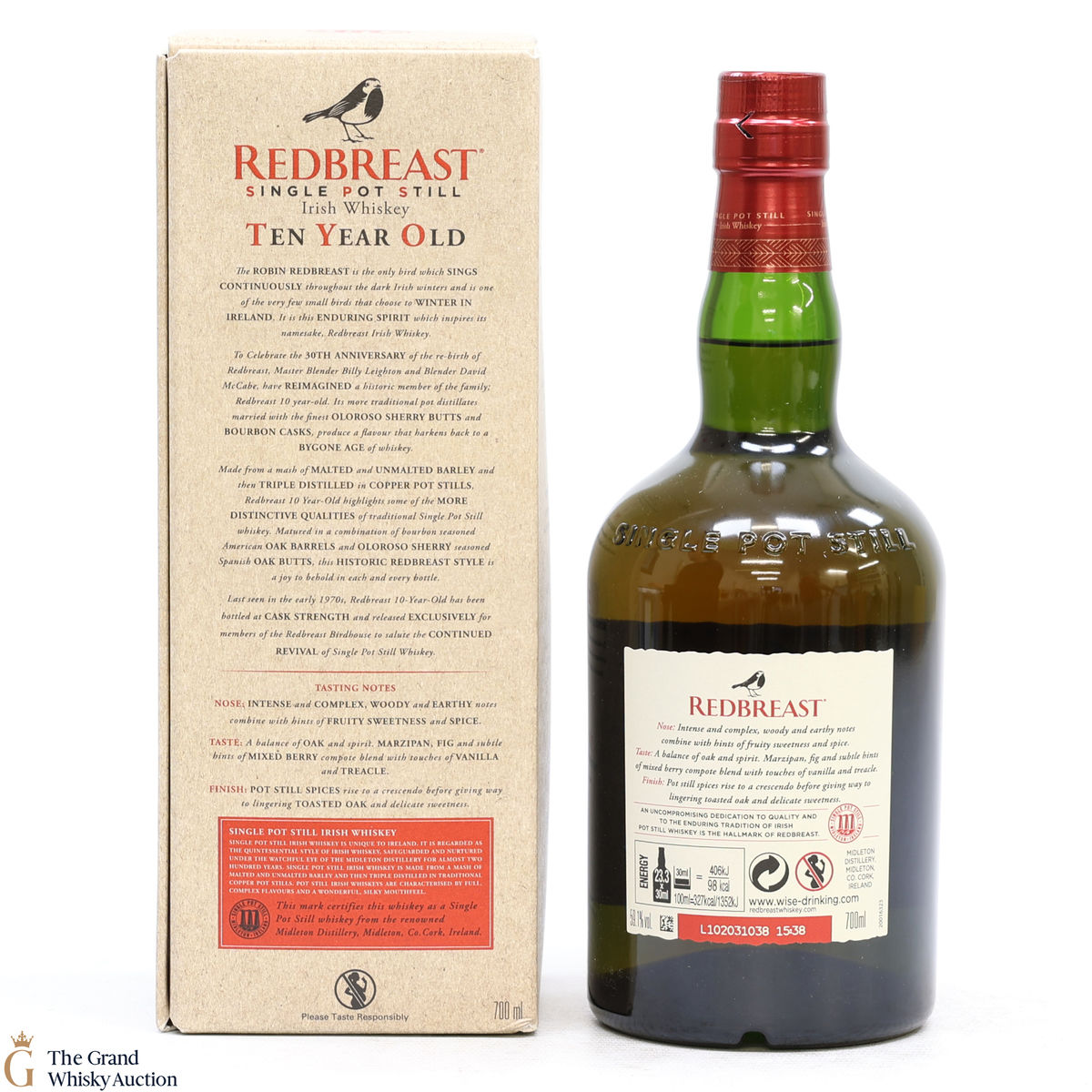 Redbreast 10 Year Old is a Bird House Exclusive bottling to celebrate the 30th anniversary of the re-birth of the Redbreast. Matured in a combination of bourbon-seasoned American oak barrels and Oloroso sherry seasoned Spanish oak butts before being bottled at a cask strength of 59.1% ABV is from batch 1.