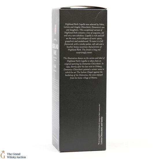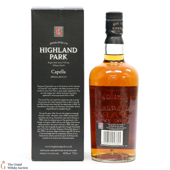 Highland Park Capella was released in 2002. It marks the 60th anniversary of one of the most famous landmarks on the island - The Italian Chapel.