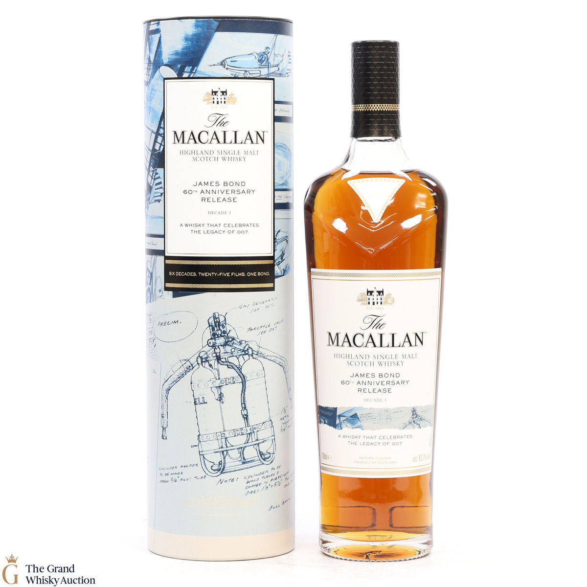 The remarkable James Bond 60th Anniversary Release is a celebration of 007 and The Macallan as modern innovators linked by their Scottish heritage. Each bottle’s packaging features an original illustrative design and colour to denote the decade it represents.