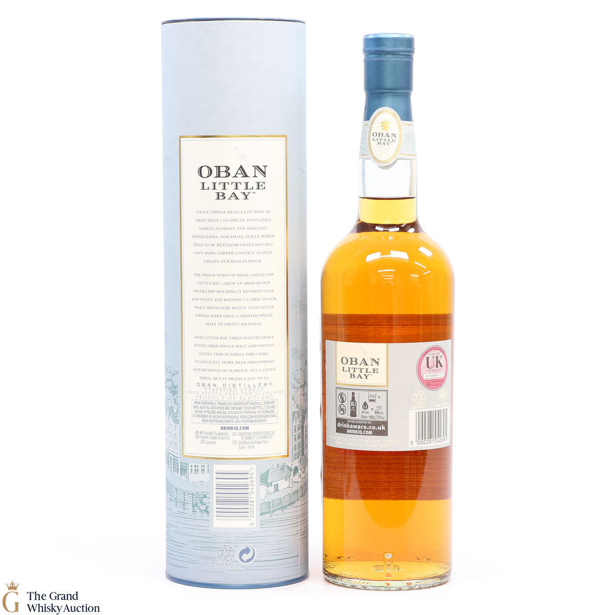 Oban Little Bay then matured in refill American oak hogsheads, European oak Sherry casks and refill casks with new ends before being married in the smallest casks available at the distillery, 200-litre ex-bourbon barrels.