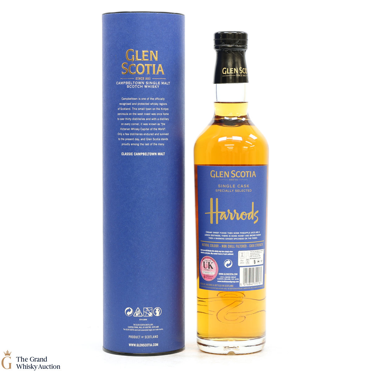 This is a single cask of Glen Scotia, specially selected by Harrods of Knightsbridge. It was distilled in 1992 and matured in single-refill American oak hogshead #40 for 31 years prior to bottling in 2023.