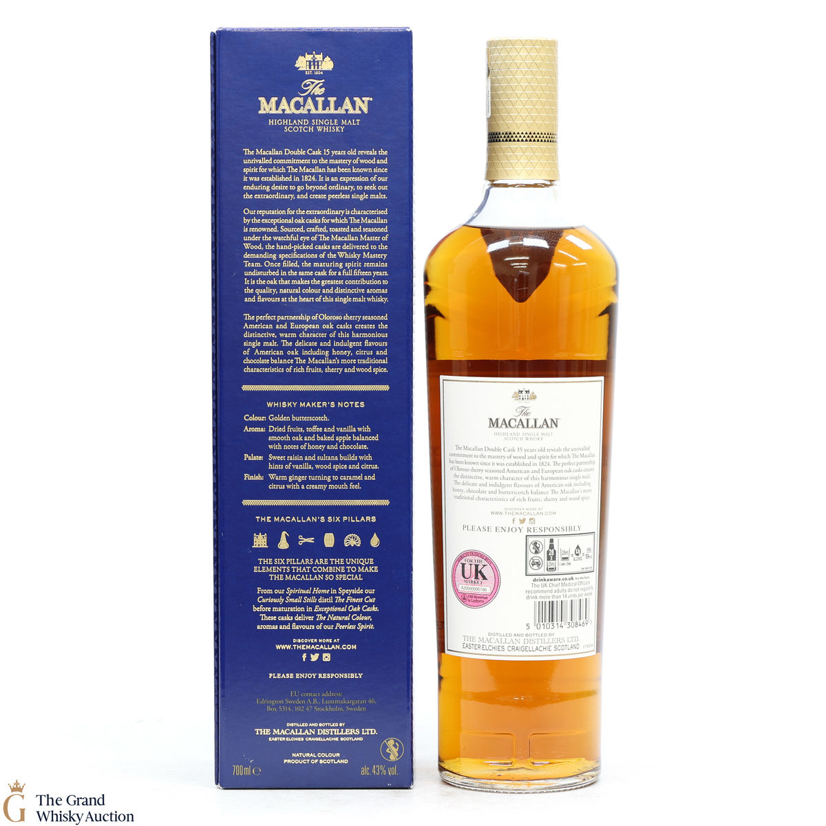This 15 Year Old Macallan was matured in a combination of American and European Sherry oak for a minimum of 15 years. It is part of the Macallan Double Cask range, which marries the classic Macallan style and the sweetness of American oak.