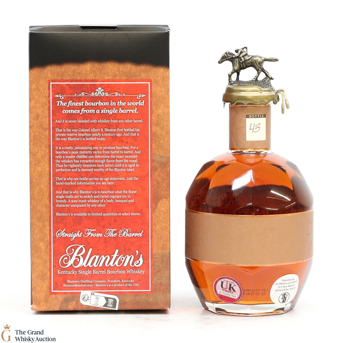 PLEASE NOTE: The wax seal on Blanton's bottles are prone to cracking in transit due to their design. Therefore, as stated in our T&C’s, we do not and will not accept liability should the seal be breached, broken, split or leak in transit. Additionally, please know due to the design of the internal cardboard packaging that surrounds the top of the bottles, it too may be torn. By bidding on this lot you have understood this to be true. Insurance is for complete breakage or loss in transit only.