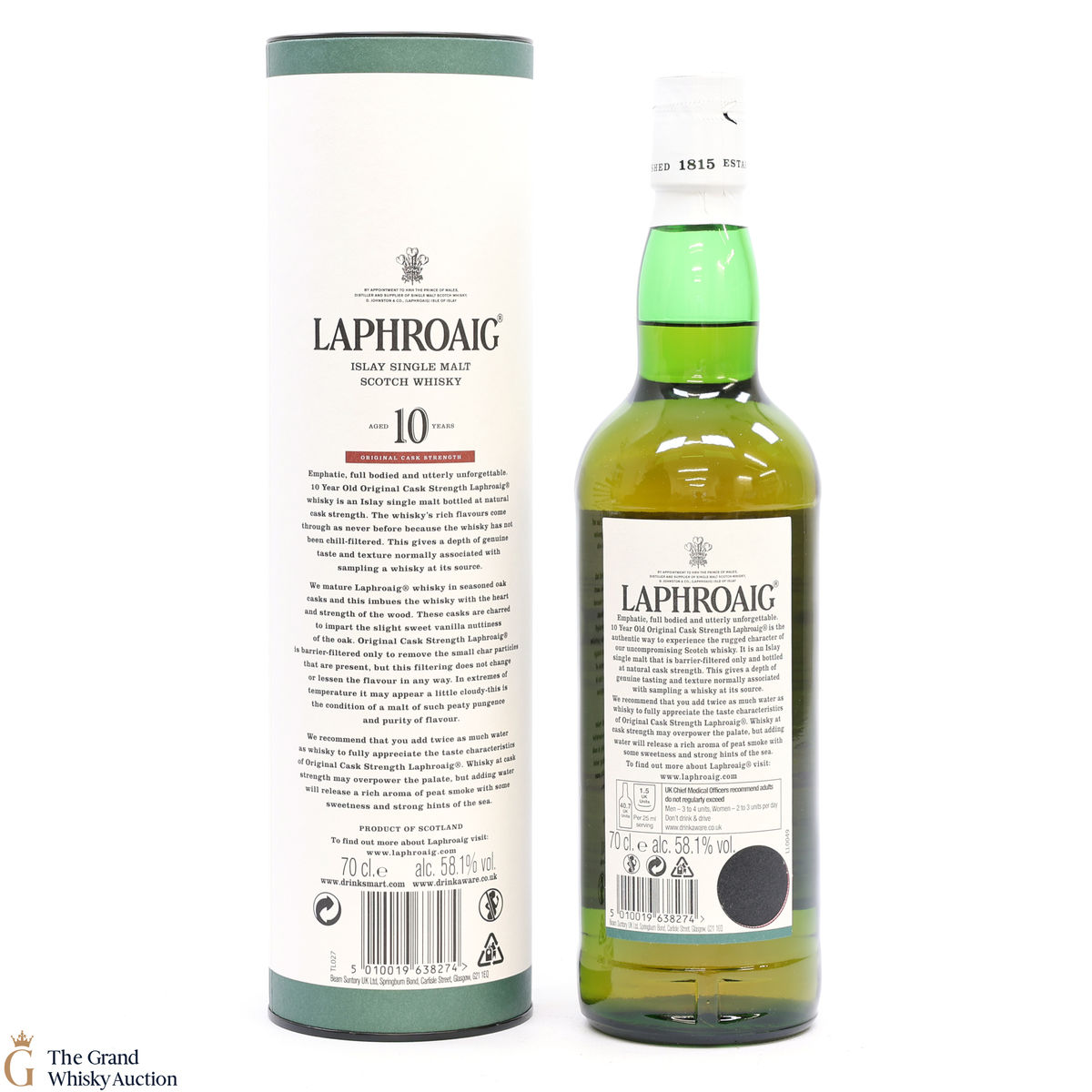 This bottling is from batch 009, original cask strength bottling of the medicinal 10-year-old from Islay's bestselling distillery, Laphroaig. In making Laphroaig, malted barley is dried over a peat fire. The smoke from this peat, found only on Islay, gives Laphroaig its particularly rich flavour. This release was bottled at 58.1% in February 2017.