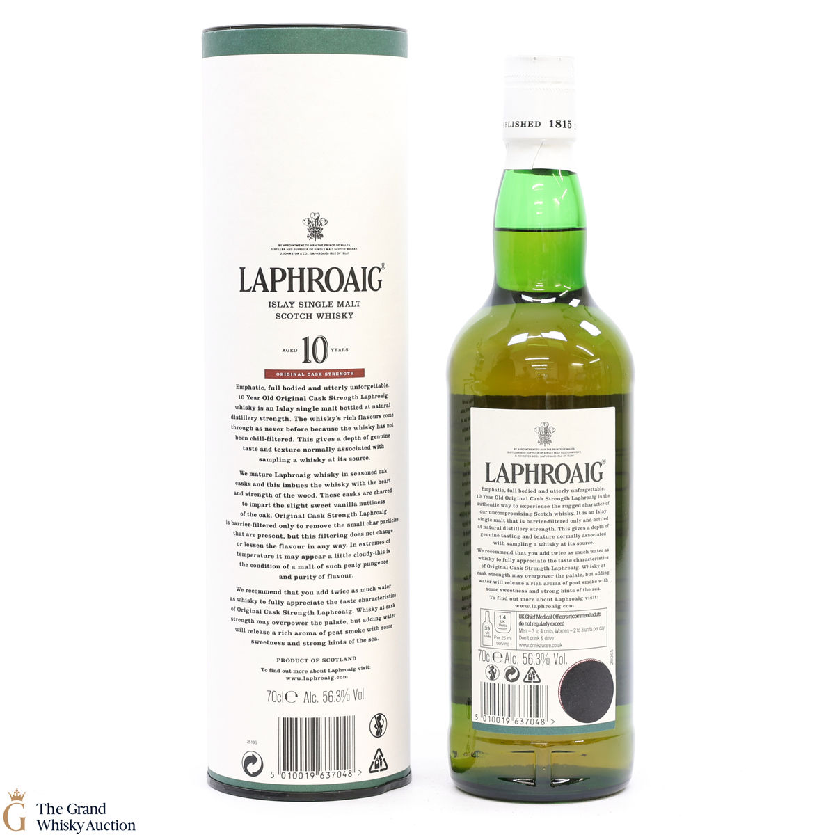 This bottling is from batch 007, original cask strength bottling of the medicinal 10 year old from Islay's bestselling distillery, Laphroaig. In making Laphroaig, malted barley is dried over a peat fire. The smoke from this peat, found only on Islay, gives Laphroaig its particularly rich flavour. This release was bottled at 56.3% in January 2015. It was the year Laphroaig celebrated 200 years of Laphroaig.