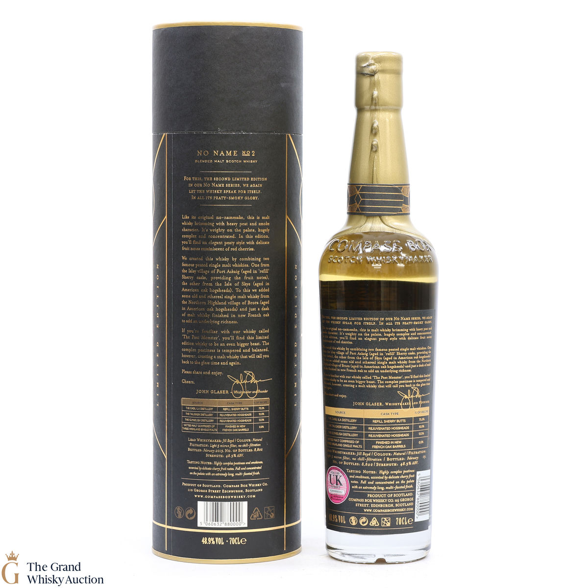 No Name No. 2 is a limited edition blend by Compass Box, described as being ‘more refined’ than the original No Name released in 2017. This expression is largely made up of: