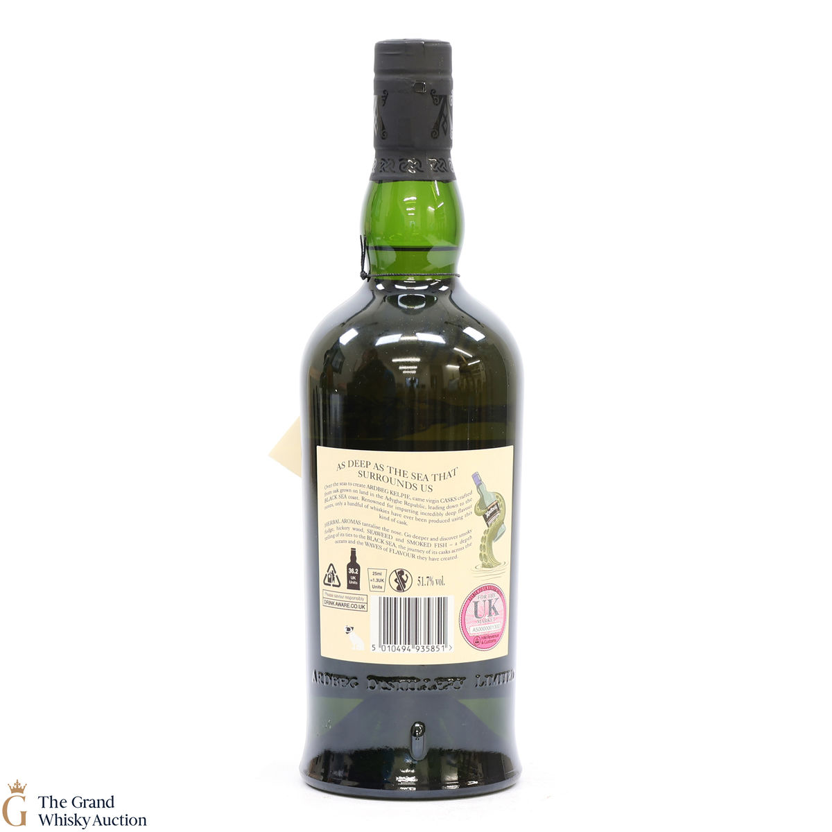 This is a committee exclusive release of the Ardbeg Kelpie, a single malt released in 2017. It was matured in casks made from virgin Black Sea oak and more traditional bourbon casks. The Committee Release is bottled at the higher strength of 51.7% ABV (while the standard Ardbeg Kelpie has bottled at 46% ABV).