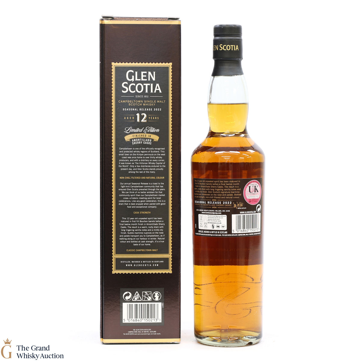 This 12-year-old Glen Scotia was then, finished for 12 months in a combination of first-fill Bourbon Barrels before a final twelve-month finish in amontillado Sherry Casks. Bottled at 53.3% ABV. Limited Edition seasonal release for 2022.
