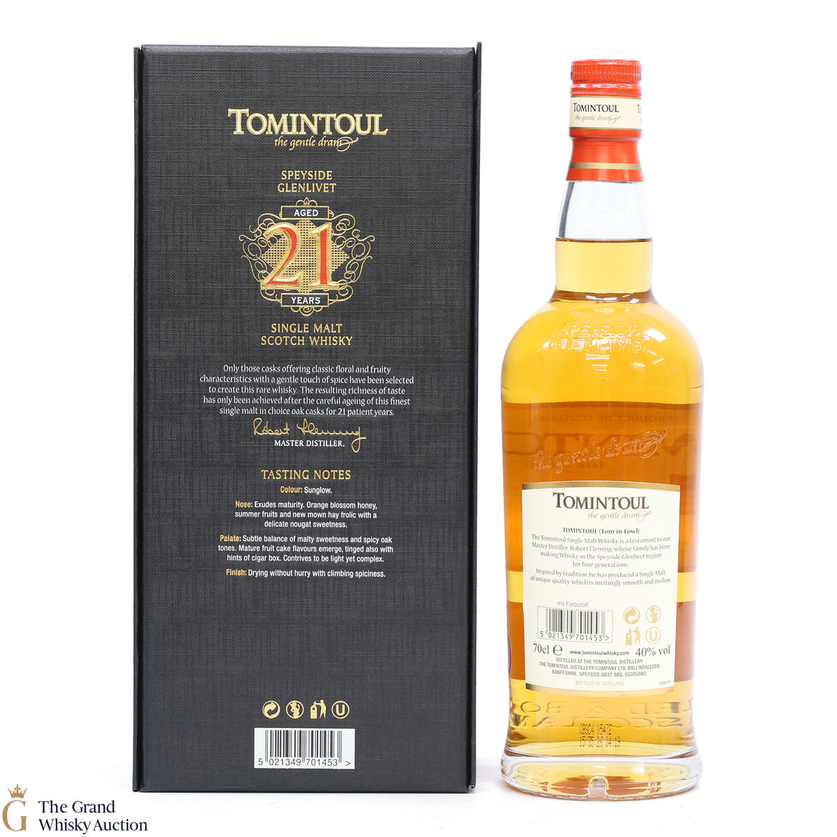 A 21-year-old single malt expression from Tomintoul. It has been matured in oak casks and crafted by the fourth generation distiller, Robert Fleming.
