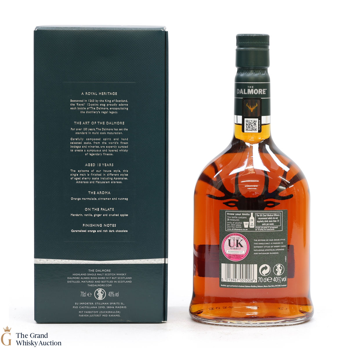 This Dalmore 15 year old was matured for 12 years in American white oak ex-bourbon casks and then a further maturation in three different sherry casks: Amoroso, Apostoles and Matusalem Oloroso.