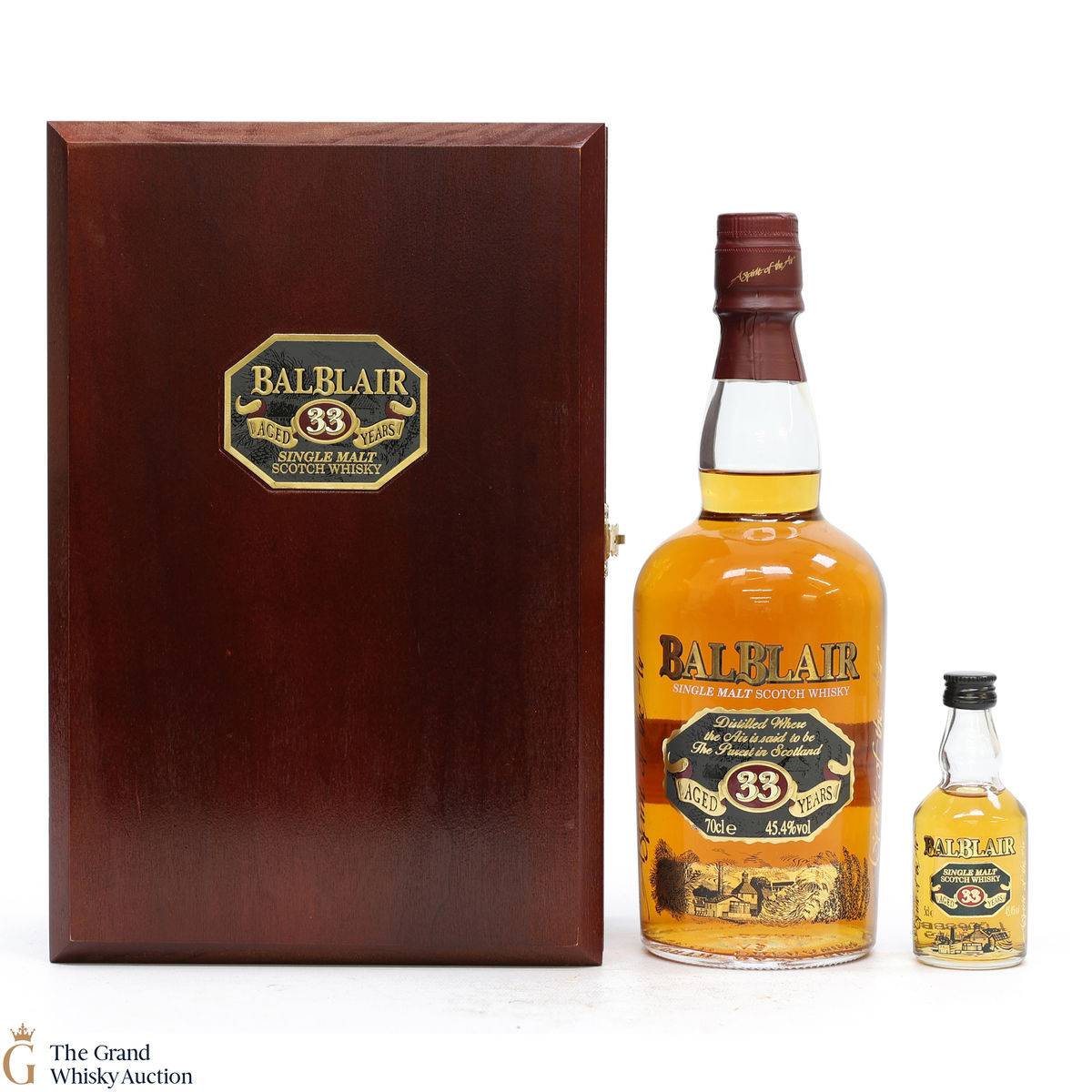A stunning set from Balblair that includes a 70cl bottle of their 33 year old whisky with a branded and lined case, nosing glass and 5cl miniature. It also comes with a certificate of authenticity and tasting notes on a scroll. This set was released in the year 2000.