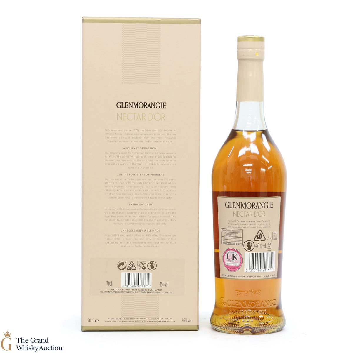 Due to the various ages of bottles and their seals, the condition of liquid is at the buyer's discretion and no claim can be lodged against failure/leakage in transit. Loss and breakage cover is available at 3% of the hammer price as standard. If the lot is not insured, no claim can be lodged against the courier or The Grand Whisky Auction for breakage or loss in transit.