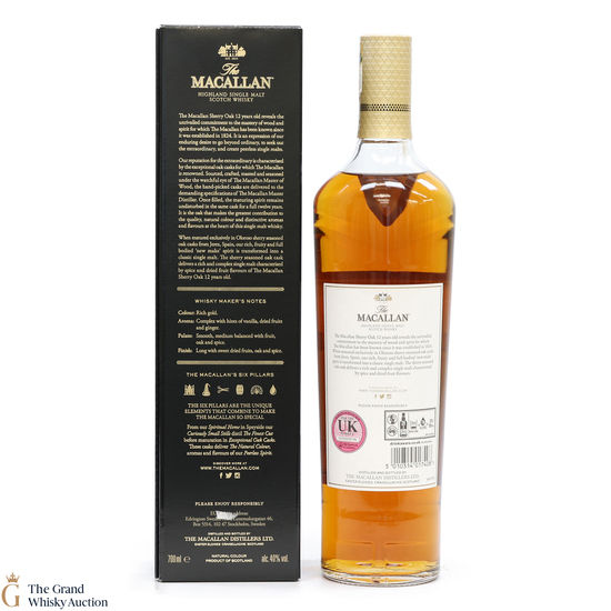 The Macallan Sherry Oak 12 Years Old forms part of the Sherry Oak range which features a series of single malt whiskies matured exclusively in hand-picked sherry-seasoned oak casks from Jerez for richness and complexity.