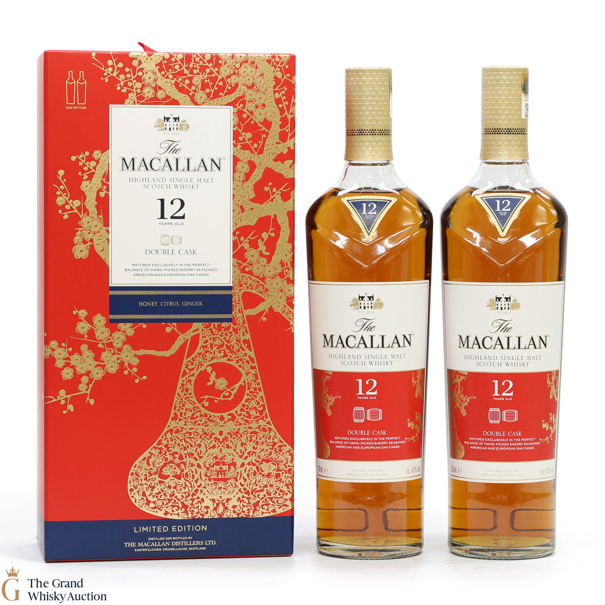 With bespoke label designs, this is an eye-catching limited-edition release twin pack containing 2 x 70cl bottles of The Macallan 12-year-old Double Cask single malt whisky.