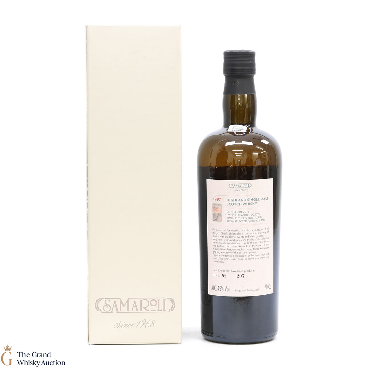This Samaroli single cask was distilled at the Clynelish in 1997 and matured in selected cask #6938 until being bottled in 2016 at 45% ABV.