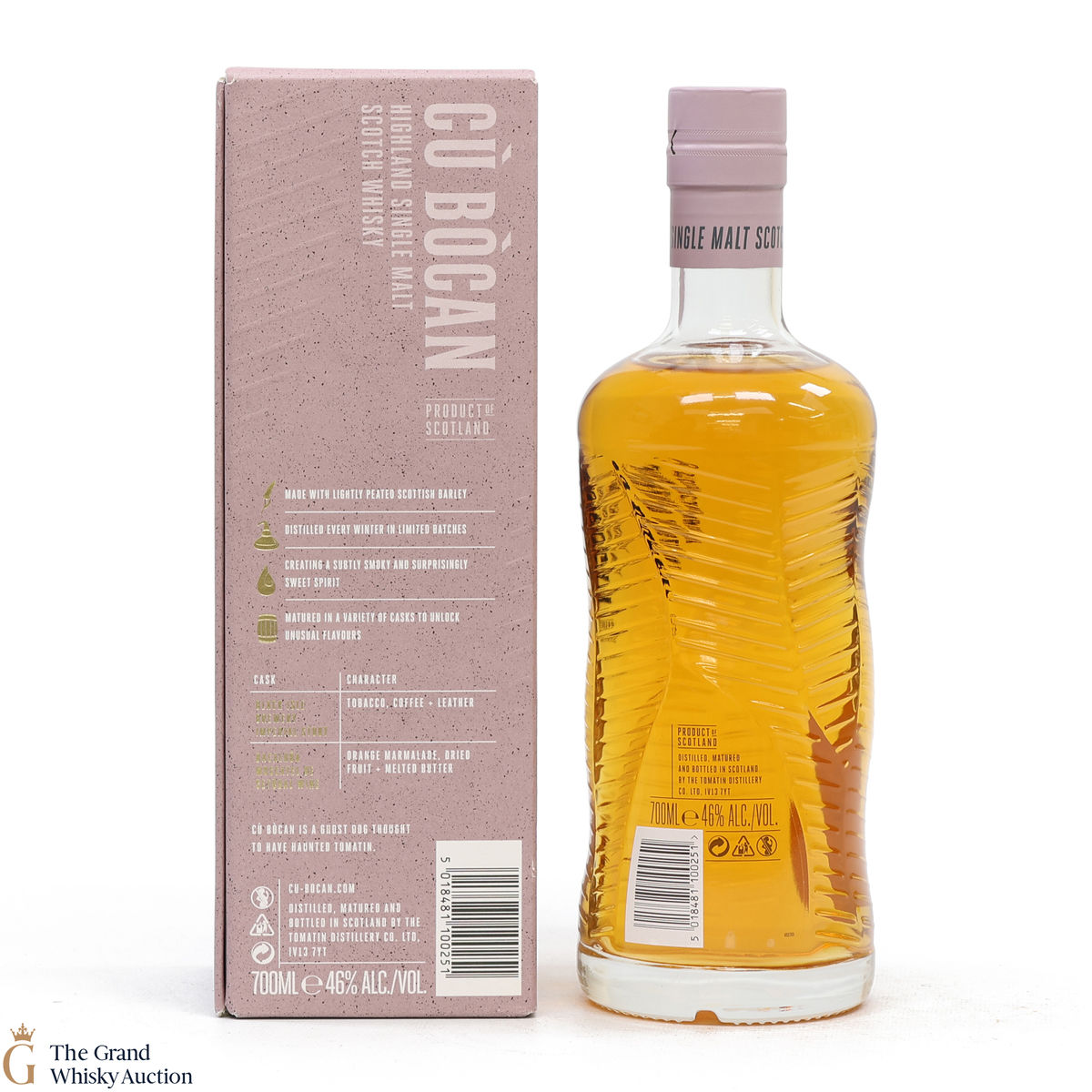 Casks were borrowed and used by Black Isle Brewery from Tomatin Distillery to produce some of their own stout under the condition they were returned once emptied. Cu Bocan was matured in Japanese Shochu and European Virgin Oak Casks, it was distilled from the cask and finished in the casks which held the Black Isle Brewery stout to add extra taste.