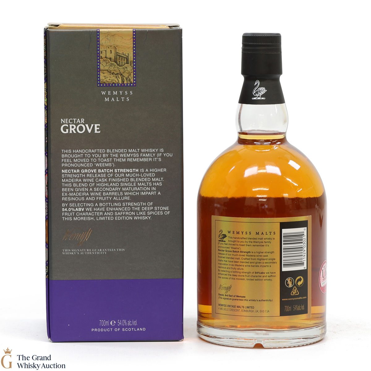 A limited edition, Batch Strength expression of Nectar Grove from Wemyss Malts. The blended malt has been finished in Madeira wine casks and bottled up at a higher strength of 54% ABV.