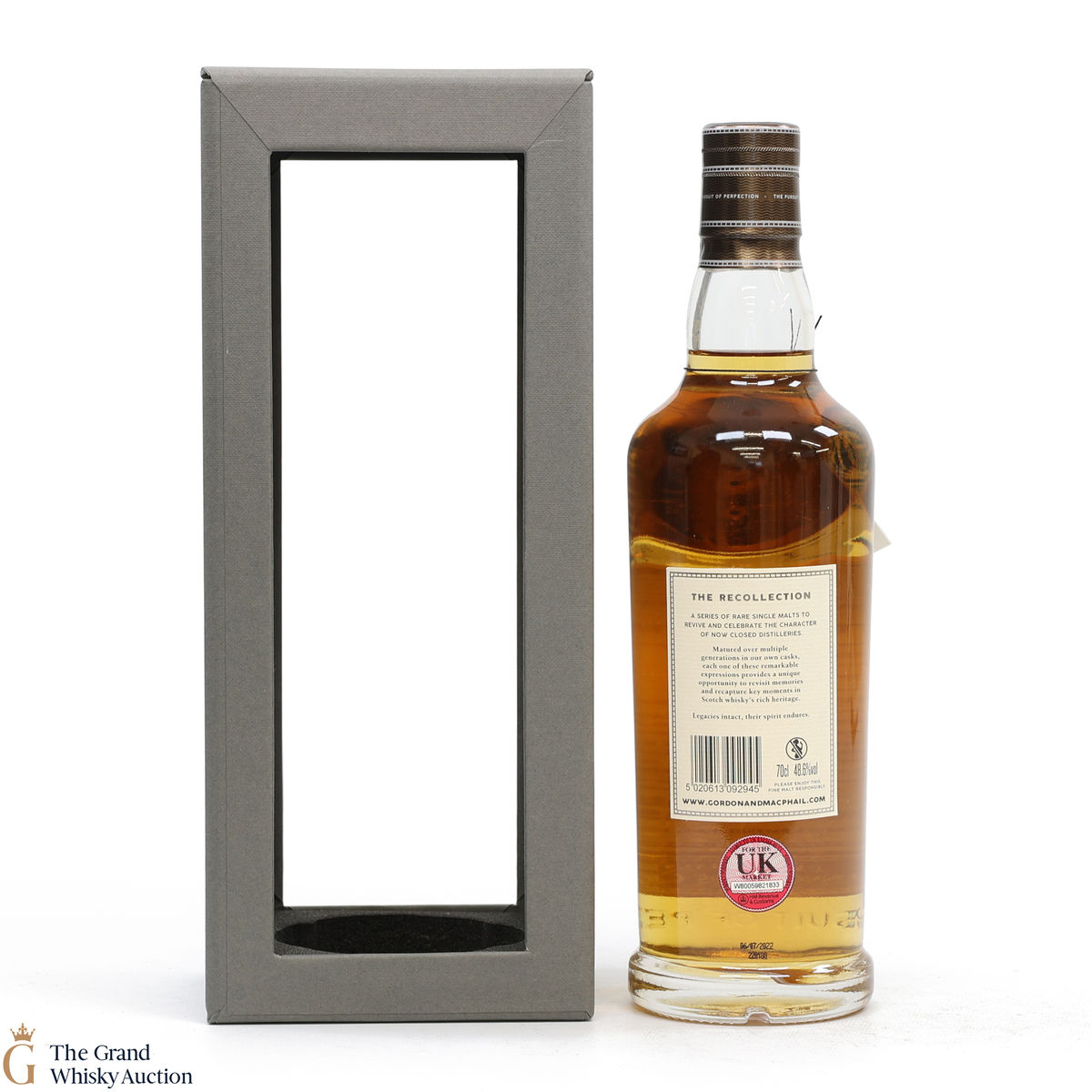 Due to the various ages of bottles and their seals, the condition of liquid is at the buyer's discretion and no claim can be lodged against failure/leakage in transit. Loss and breakage cover is available at 3% of the hammer price as standard. If the lot is not insured, no claim can be lodged against the courier or The Grand Whisky Auction for breakage or loss in transit.