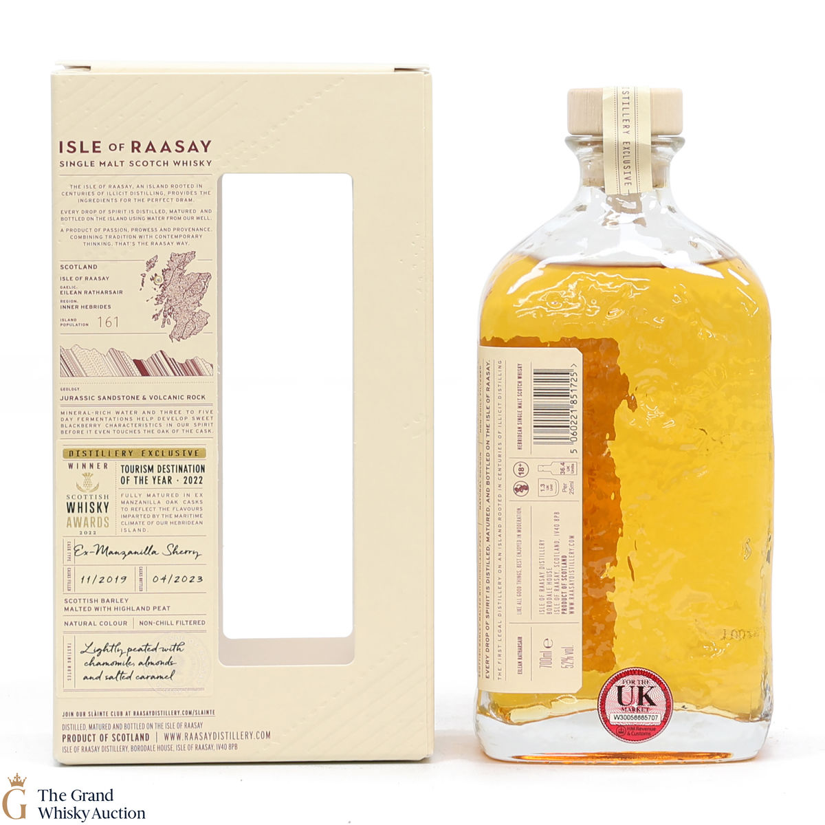 Distilled at the Raasay Distillery, this single malt was filled into an ex-Manzanilla Sherry cask in November 2019. Bottled to celebrate Raasay getting the Tourism Destination of the Year, this is one of 2500 bottles produced.