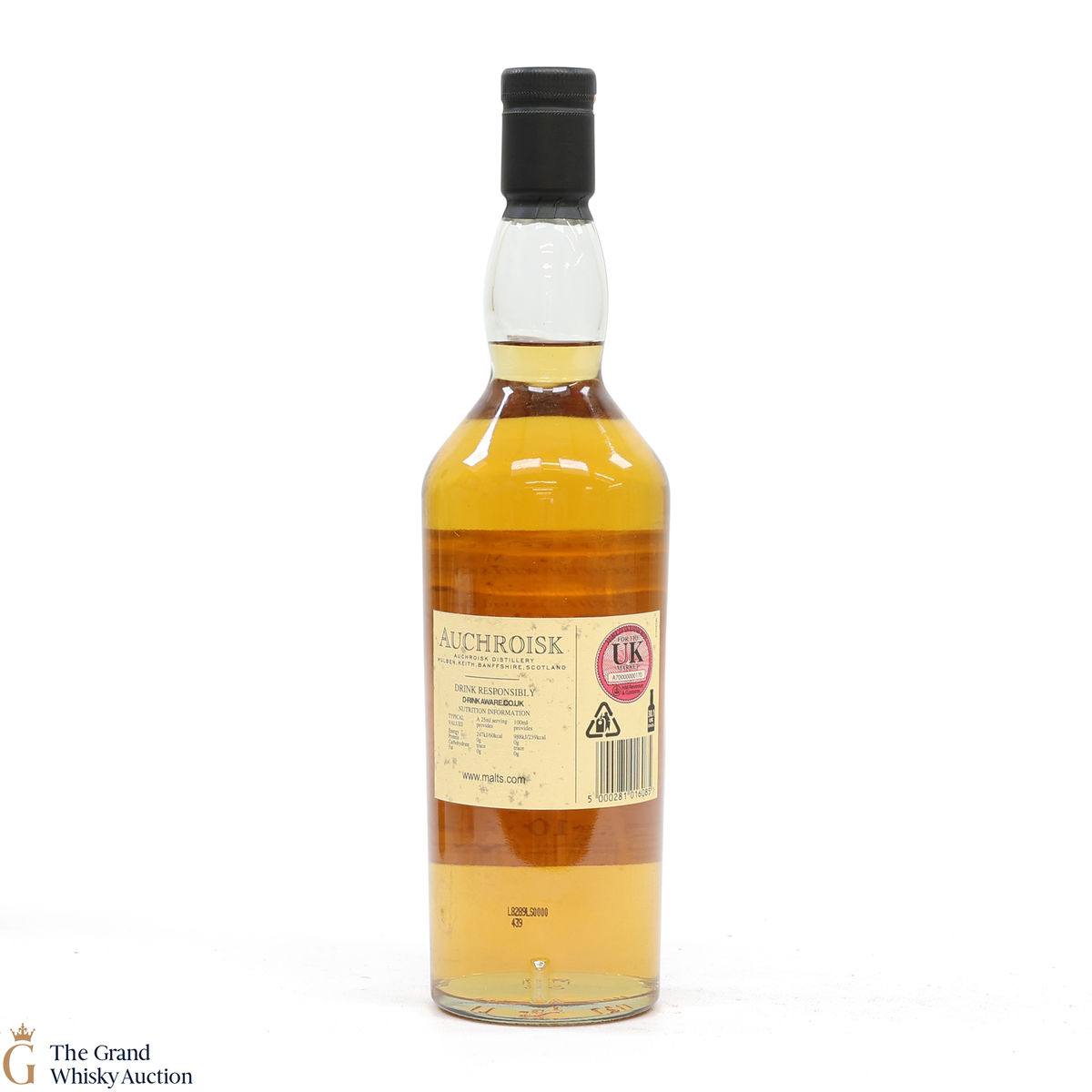 Due to the various ages of bottles and their seals, the condition of liquid is at the buyer's discretion and no claim can be lodged against failure/leakage in transit. Loss and breakage cover is available at 3% of the hammer price as standard. If the lot is not insured, no claim can be lodged against the courier or The Grand Whisky Auction for breakage or loss in transit.
