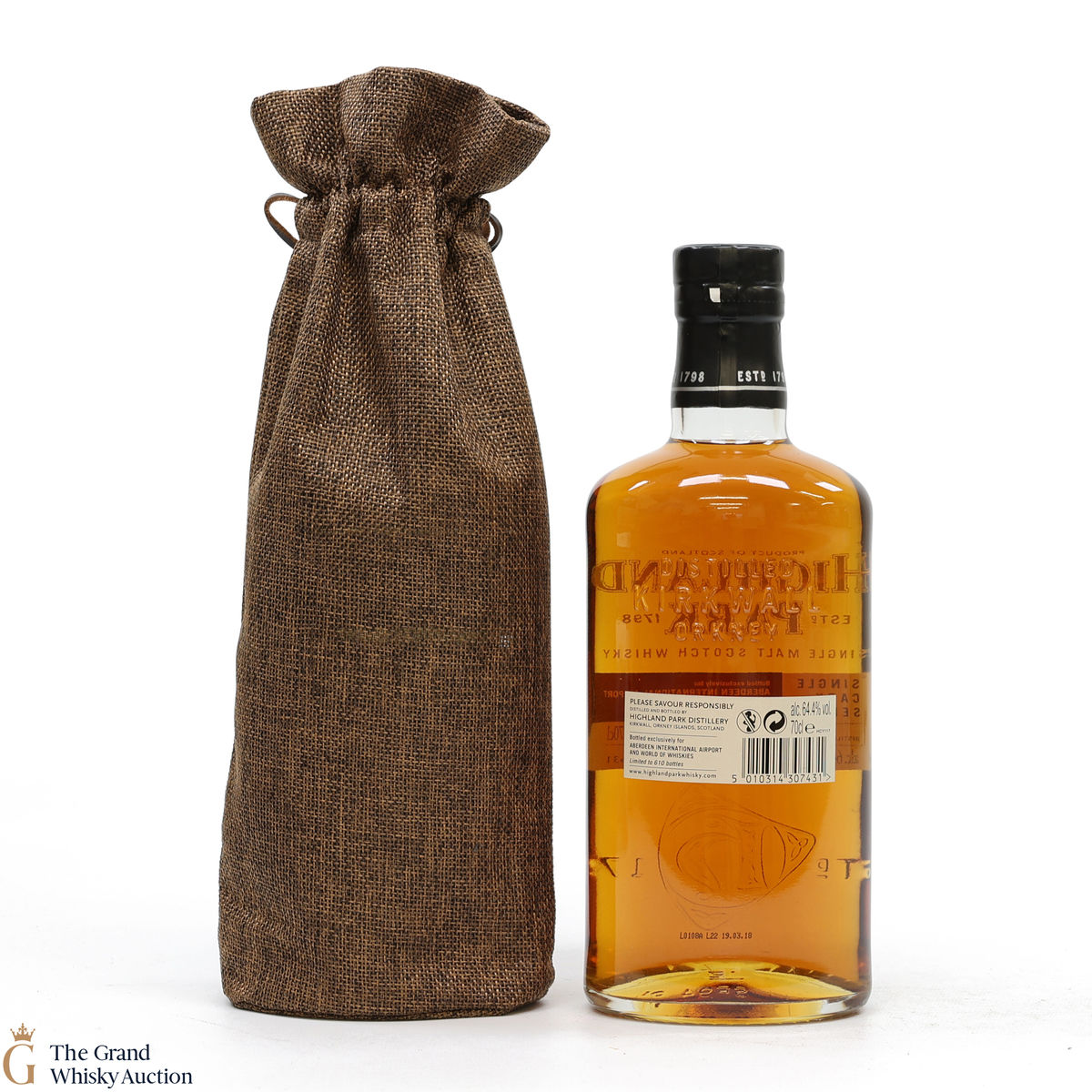 This Highland Park Single Cask Edition was bottled in 2018 exclusively for Aberdeen International Airport and World of Whiskies. With just 610 bottles available, the 12-year-old single malt whisky is drawn from an intriguing mix of American/Spanish oak casks and bottled at a cask strength of 64.4% ABV.