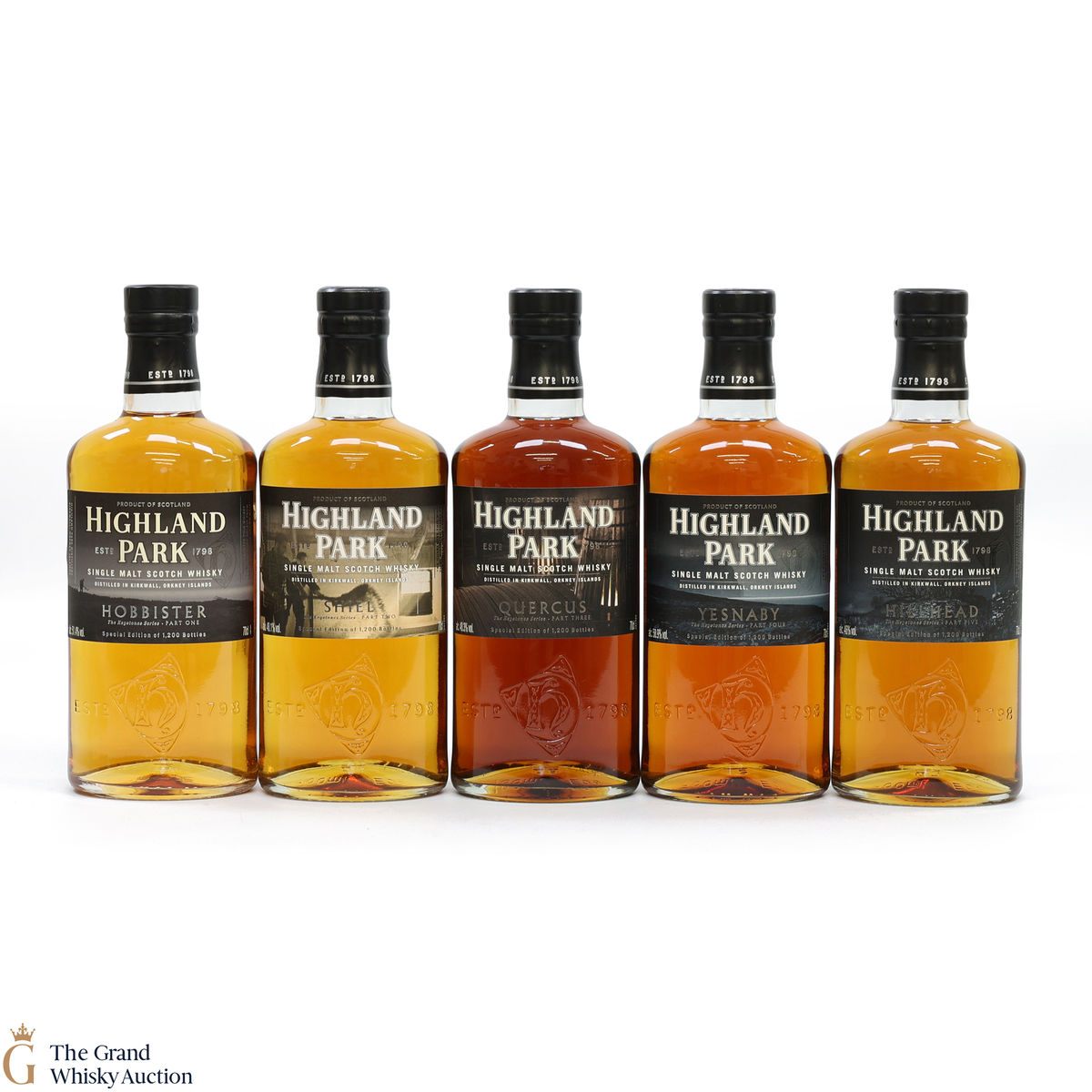 This lot contains 5 x 70cl, Hobbister, Shiel, Quercus, Yesnaby & Hillhead.