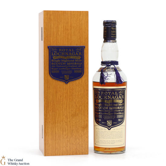 Royal Lochnagar Select Reserve is presented in a wooden case that is lined with a royal blue colour.