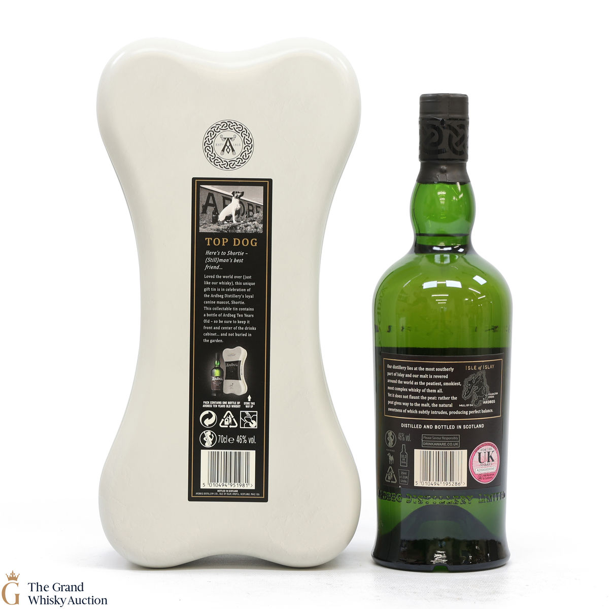This 70cl Ardbeg 10 Year Old comes in a unique bone-shaped presentation tin to honour the distillery's mascot Shortie.