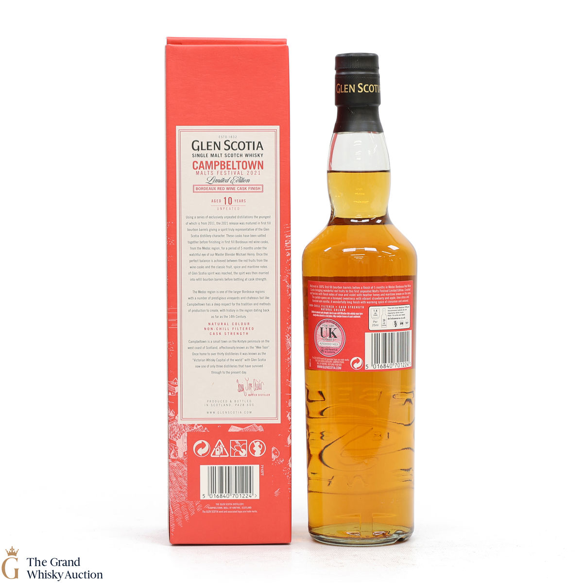 Distilled at Glen Scotia distillery, this limited edition malt was matured in 100% first-fill bourbon barrels before being finished in Bourdeaux red wine casks. This bottling was specifically for the Campbeltown Malt Festival 2021 and is the first unpeated release.