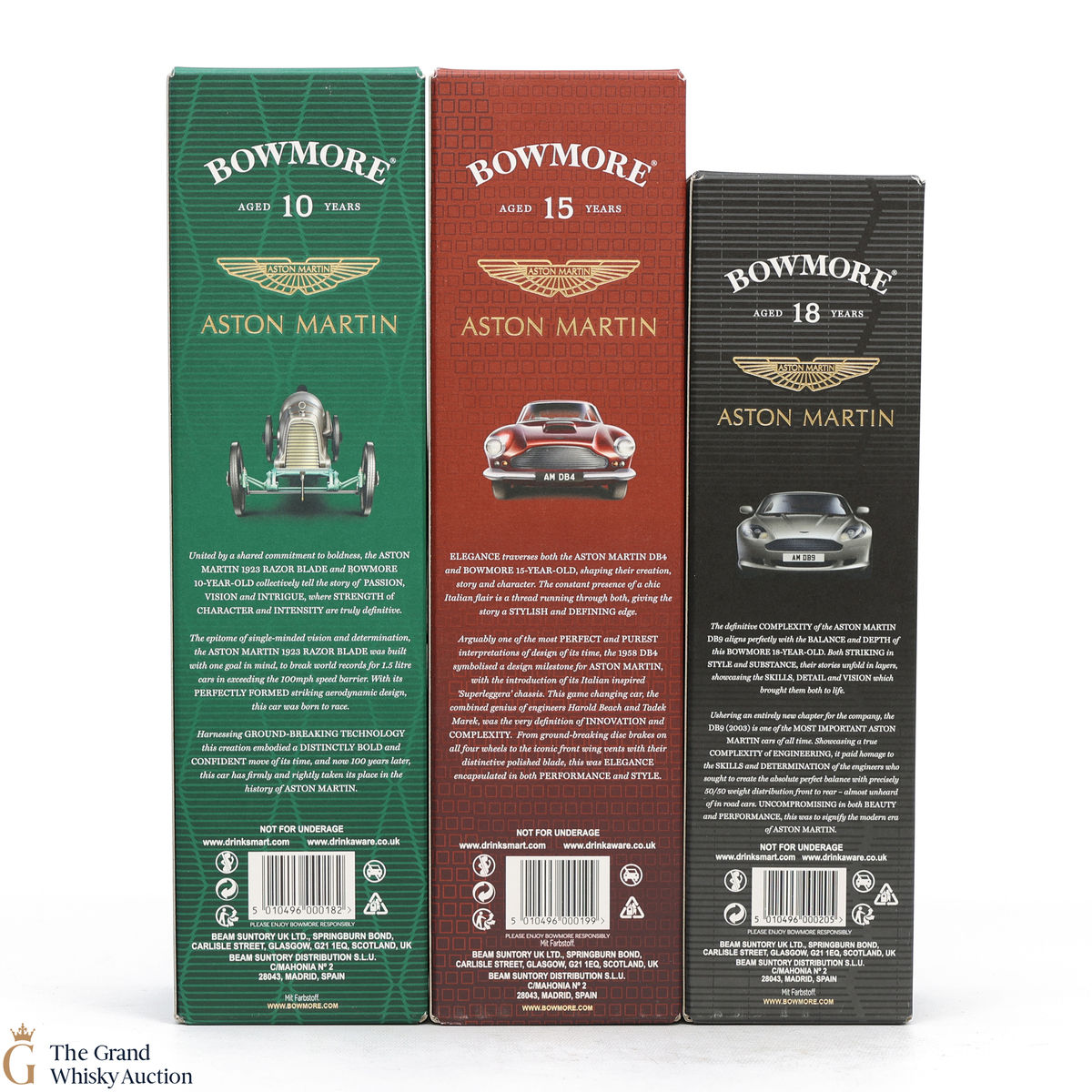 Bowmore - 15 Year Old - Aston Martin Edition 8 (1L): Edition 8 of the Bowmore x Aston Martin collaboration celebrates the iconic Aston Martin 1958 DB4. Arguably one of the most perfect and purest interpretations of design of its time. This single malt was married in 1st fill Bourbon casks to create a refreshingly, silky peat-smoked character with notes of citrus. 43% ABV