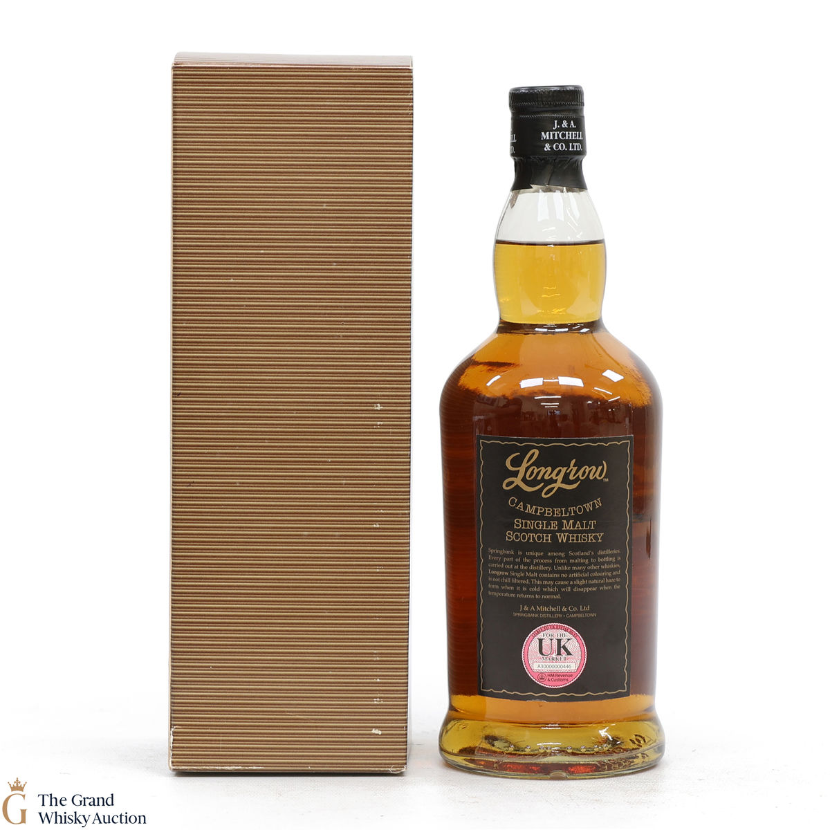 A bottle of Longrow CV which used to be Longrow's entry-level whisky. Longrow is Springbank's heavily peated whisky - this is a no age statement expression. It was named Best Peated Malt at the 2010 Malt Maniacs Awards.