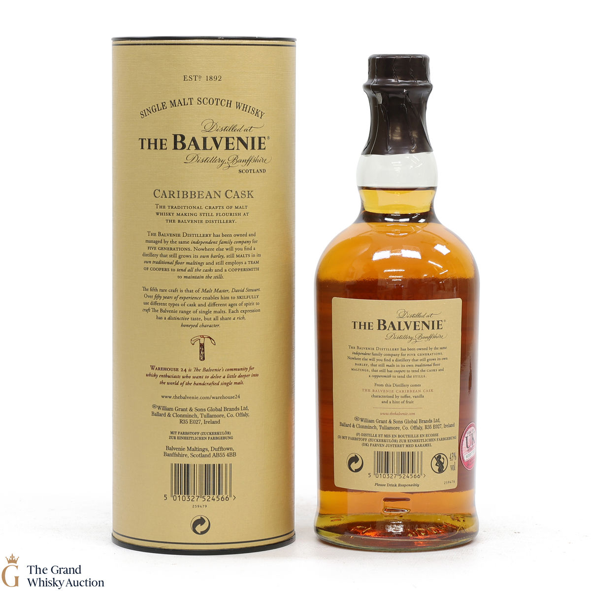 This lot is the famous Balvenie Caribbean Cask 14-year-old single malt whisky.