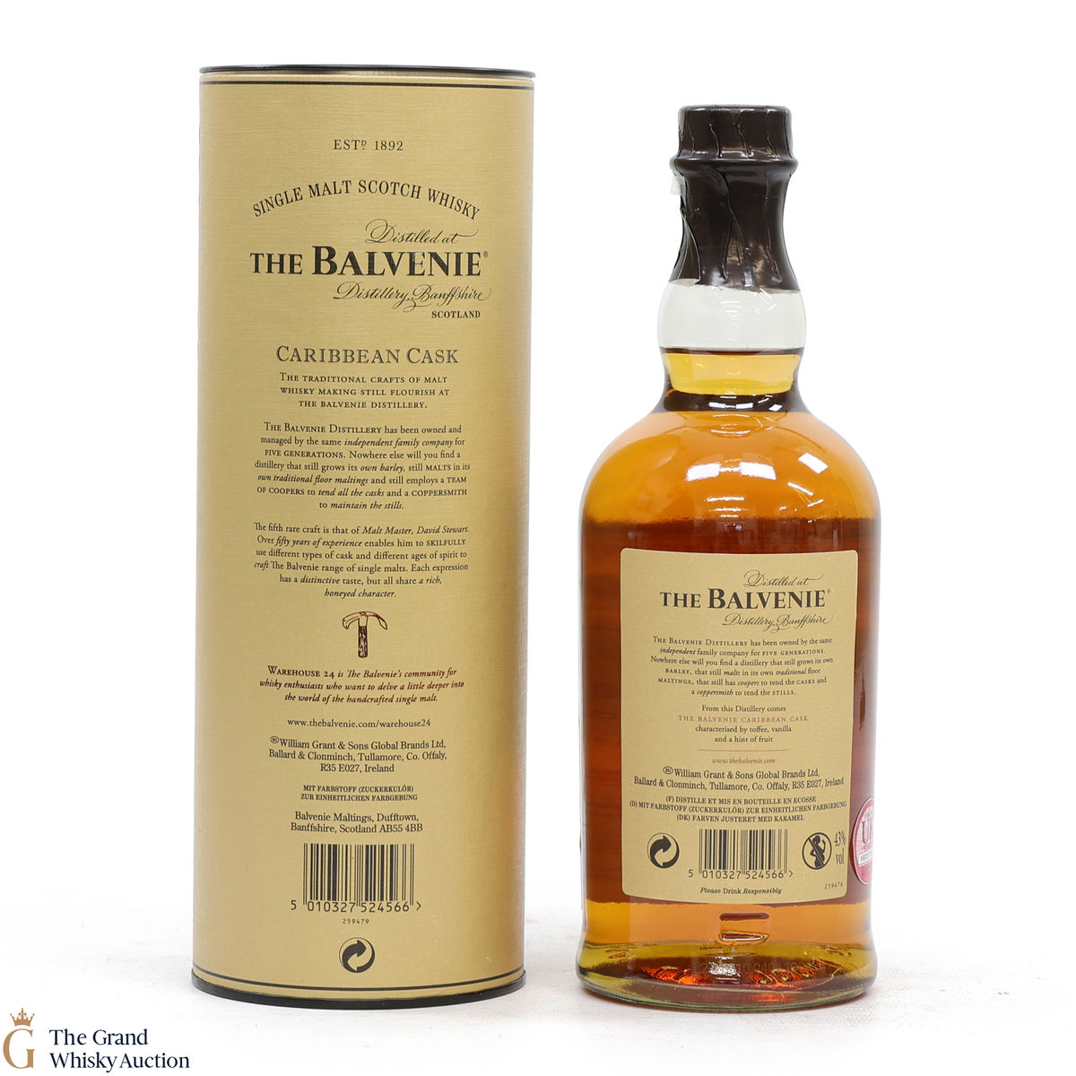This lot is the famous Balvenie Caribbean Cask 14-year-old single malt whisky.