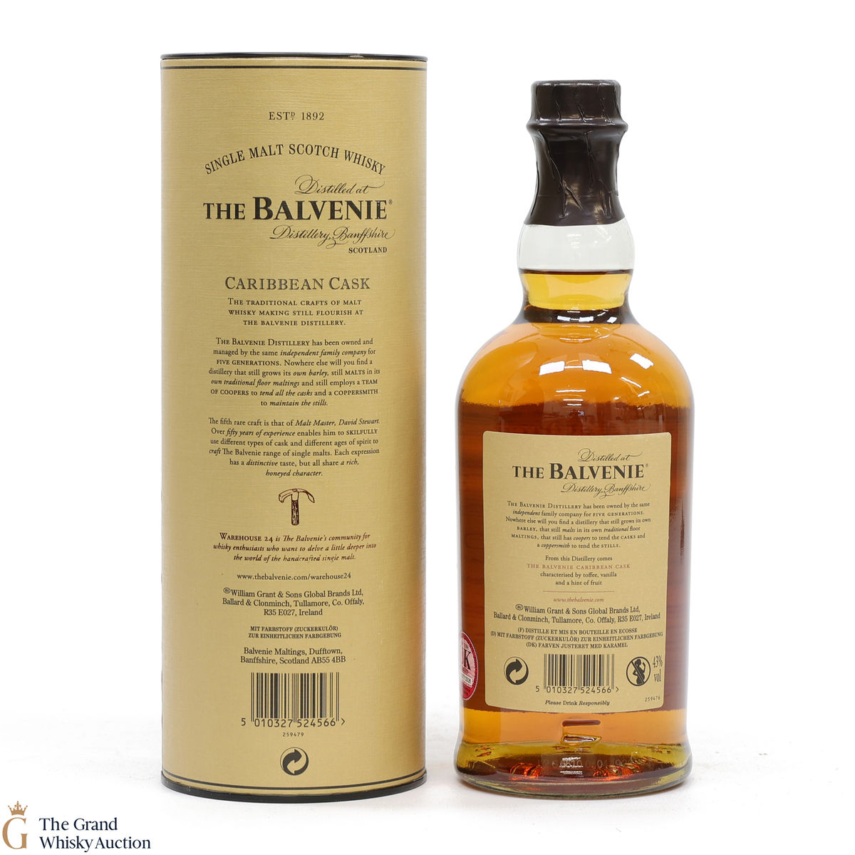 This lot is the famous Balvenie Caribbean Cask 14-year-old single malt whisky.