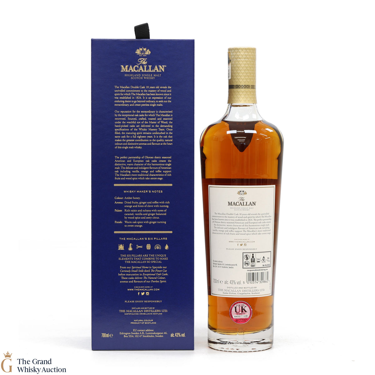 This 18 Year Old Macallan was matured in a combination of American and European Sherry oak for a minimum of 18 years. It is part of the Macallan Double Cask range, which marries the classic Macallan style and the sweetness of American oak.