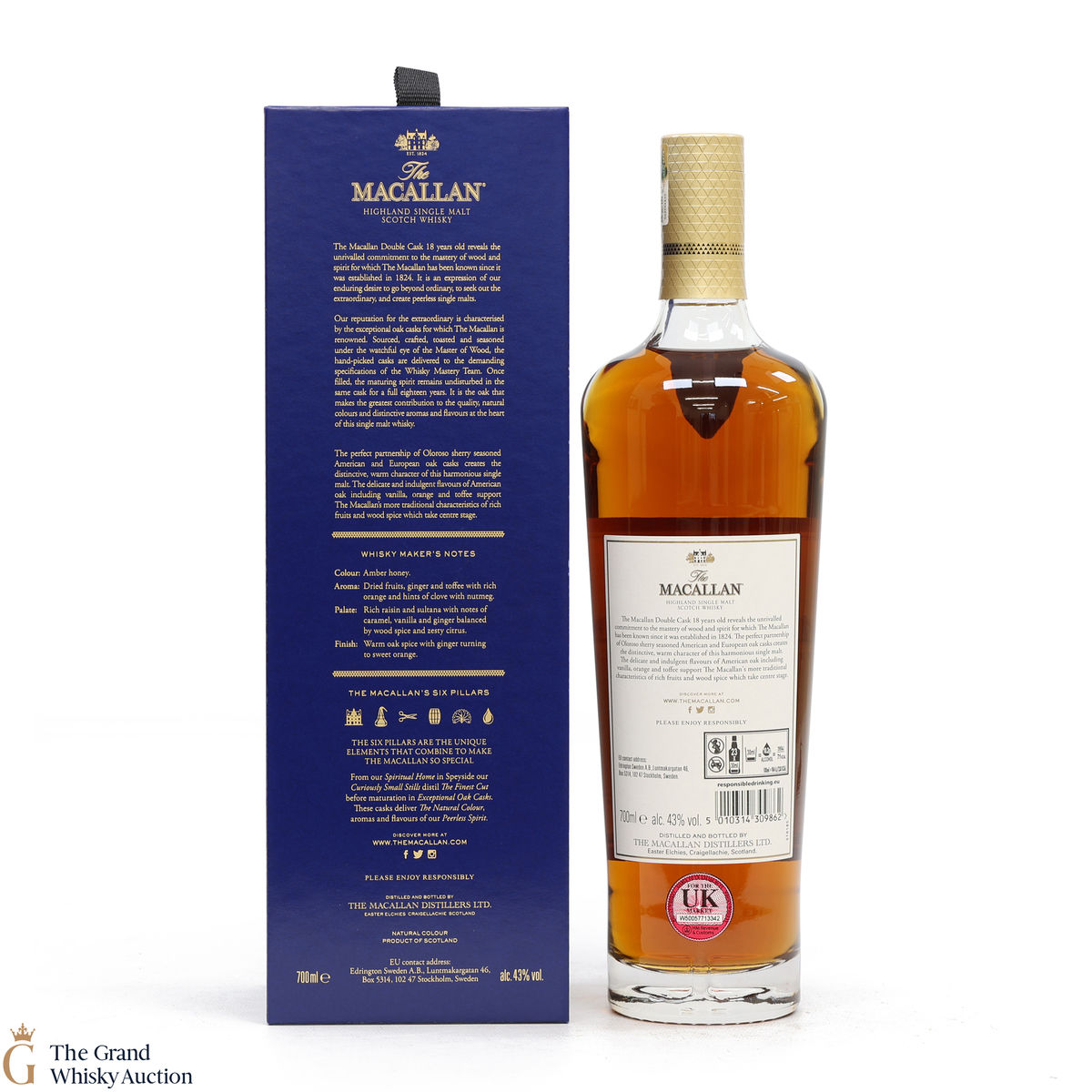 This 18 Year Old Macallan was matured in a combination of American and European Sherry oak for a minimum of 18 years. It is part of the Macallan Double Cask range, which marries the classic Macallan style and the sweetness of American oak.