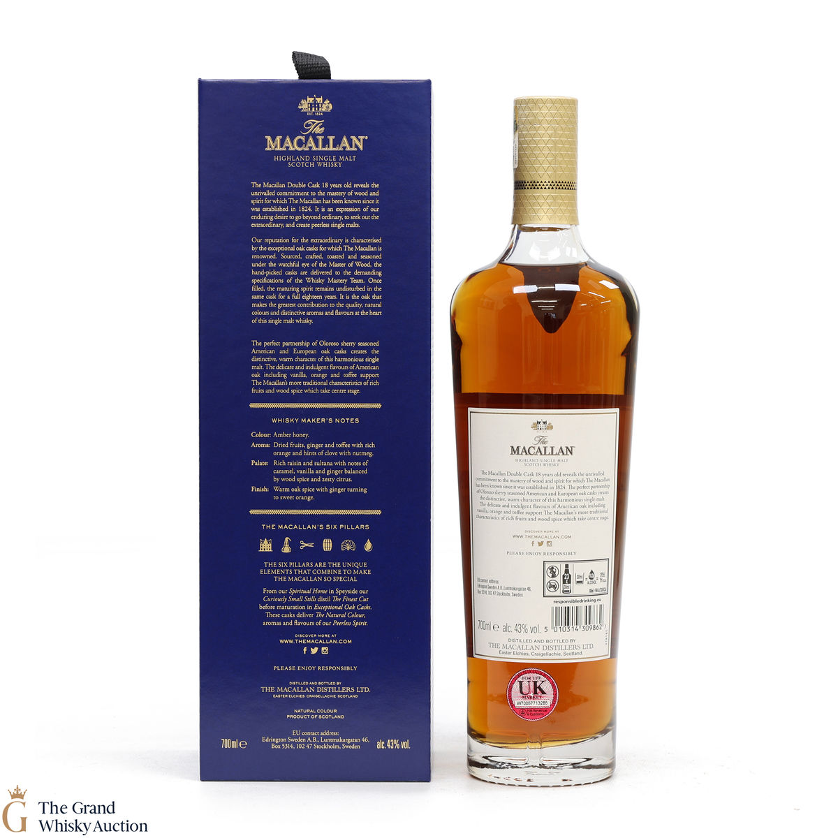 This 18 Year Old Macallan was matured in a combination of American and European Sherry oak for a minimum of 18 years. It is part of the Macallan Double Cask range, which marries the classic Macallan style and the sweetness of American oak.