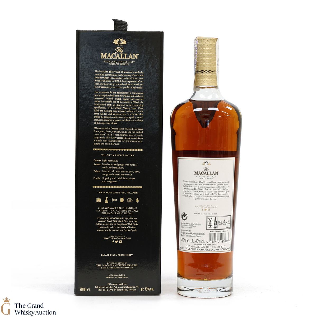 This annual release of The Macallan's popular 18 Year Old Sherry Oak is matured exclusively in sherry seasoned casks, built from both Spanish and American oak, providing a beautifully dark flavour with rich aromas.