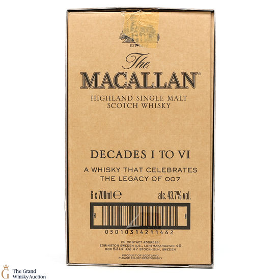 Macallan - James Bond 60th Anniversary - Decade I - VI, Prints & Globe-Trotter Case (6 x 70cl)