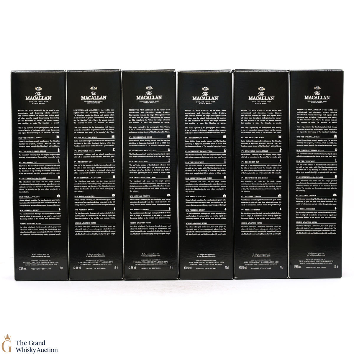The 6 x 70cl Macallan Whisky Maker's Editions that make up the Nick Veasey Pillars Collection. Each expression represents one of Macallan’s Six Pillars; including: