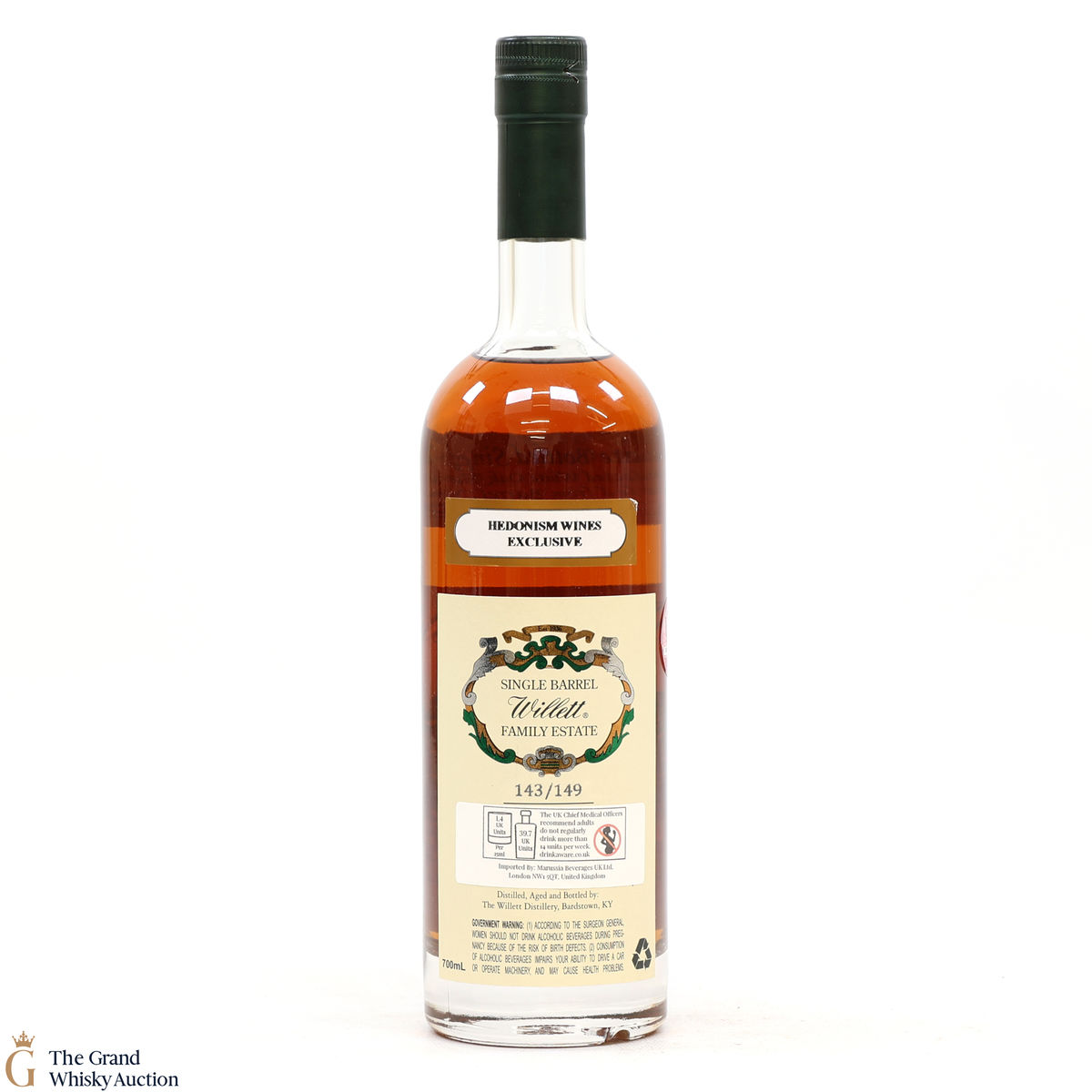 This is Willett's Family Estate bottled single barrel rye. Aged in hand-selected White Oak Barrels for 7 years. This particular bottle was hand bottled from barrel no #2111 exclusively for Hedonism Wines.