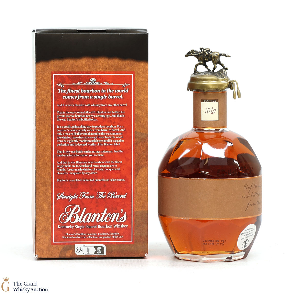 PLEASE NOTE: The wax seal on Blanton's bottles are prone to cracking in transit due to their design. Therefore, as stated in our T&C’s, we do not and will not accept liability should the seal be breached, broken, split or leak in transit. Additionally, please know due to the design of the internal cardboard packaging that surrounds the top of the bottles, it too may be torn. By bidding on this lot you have understood this to be true. Insurance is for complete breakage or loss in transit only.