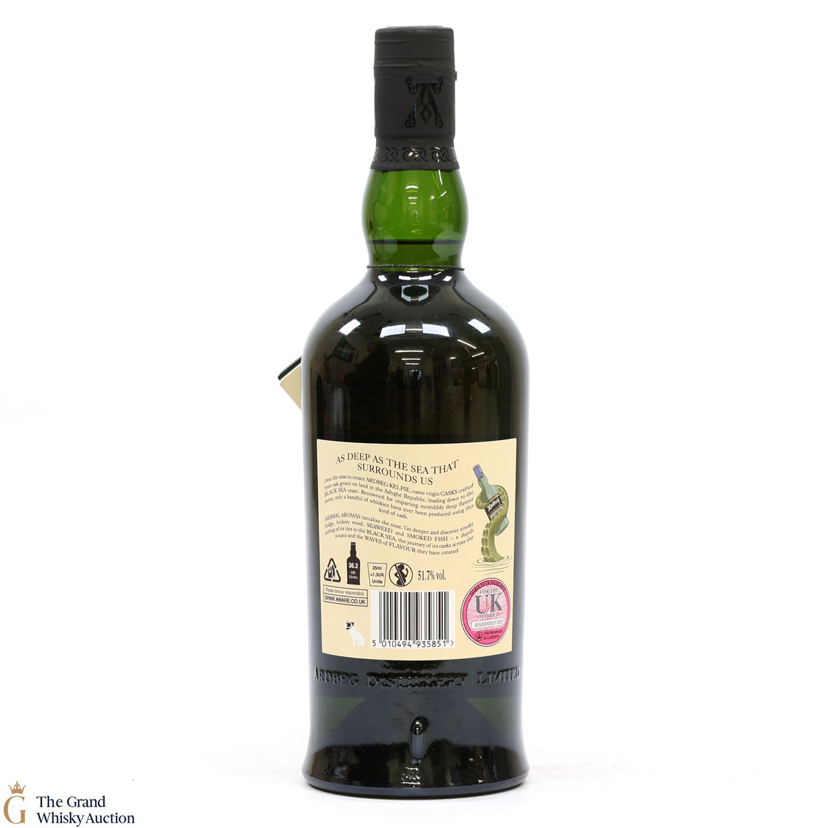 This is a committee exclusive release of the Ardbeg Kelpie, a single malt released in 2017. It was matured in casks made from virgin Black Sea oak and more traditional bourbon casks. The Committee Release is bottled at the higher strength of 51.7% ABV (while the standard Ardbeg Kelpie has bottled at 46% ABV).