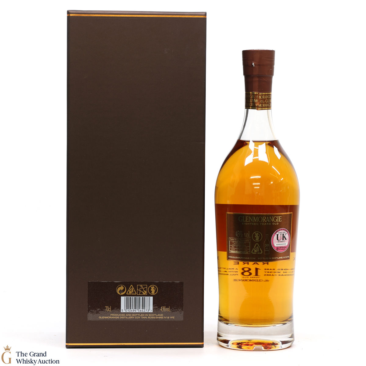 This bottle is an 18-year-old Extremely Rare, Highland single malt produced by Glenmorangie. It has been perfected by the sixteen men of Tain who have specially aged this bottle for 18 years in superior oak casks.