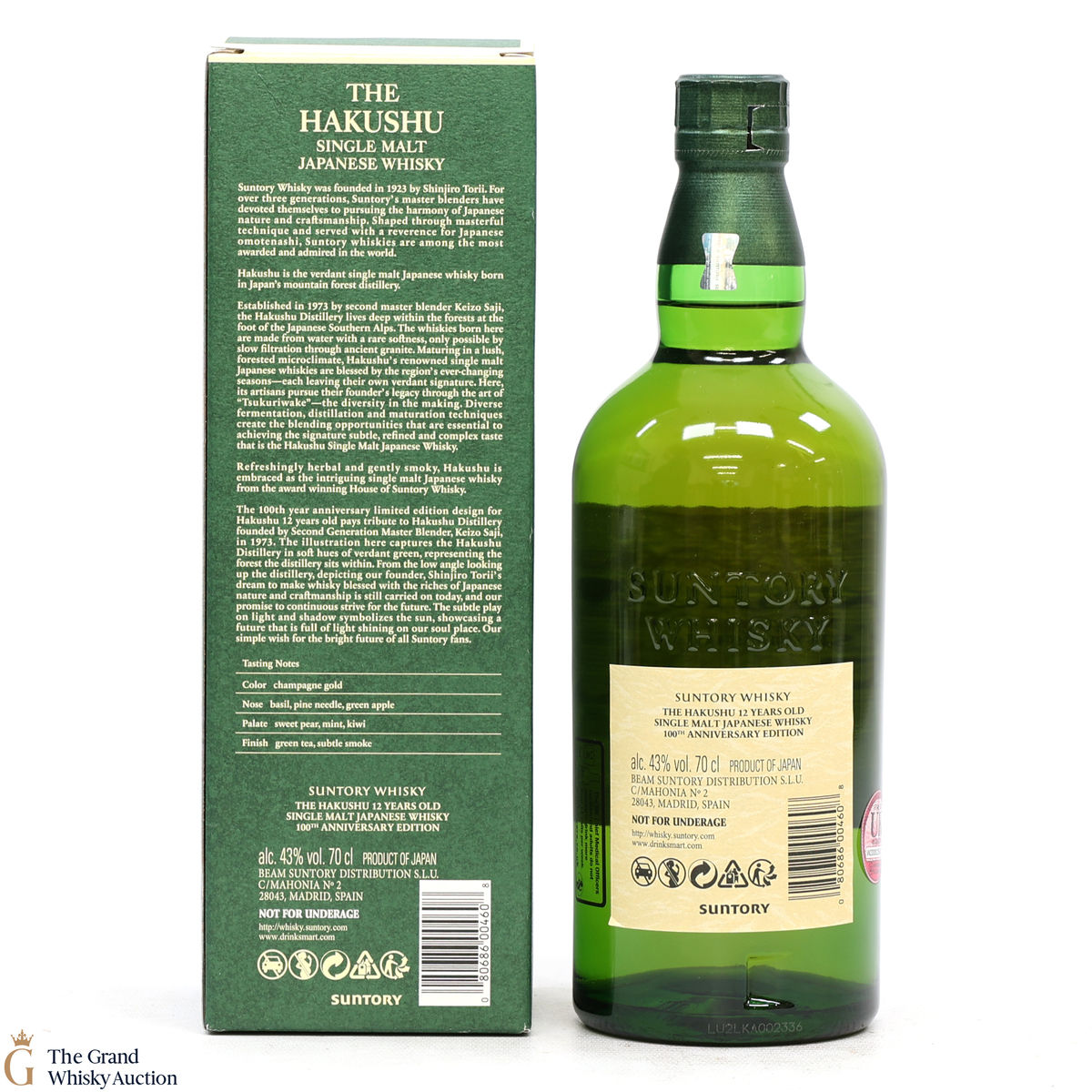 This is a 100th-anniversary limited edition bottling from Hakushu that has been aged for 12 years before its release in 2023, which lies in the foothills of Mount Kaikomagatake.