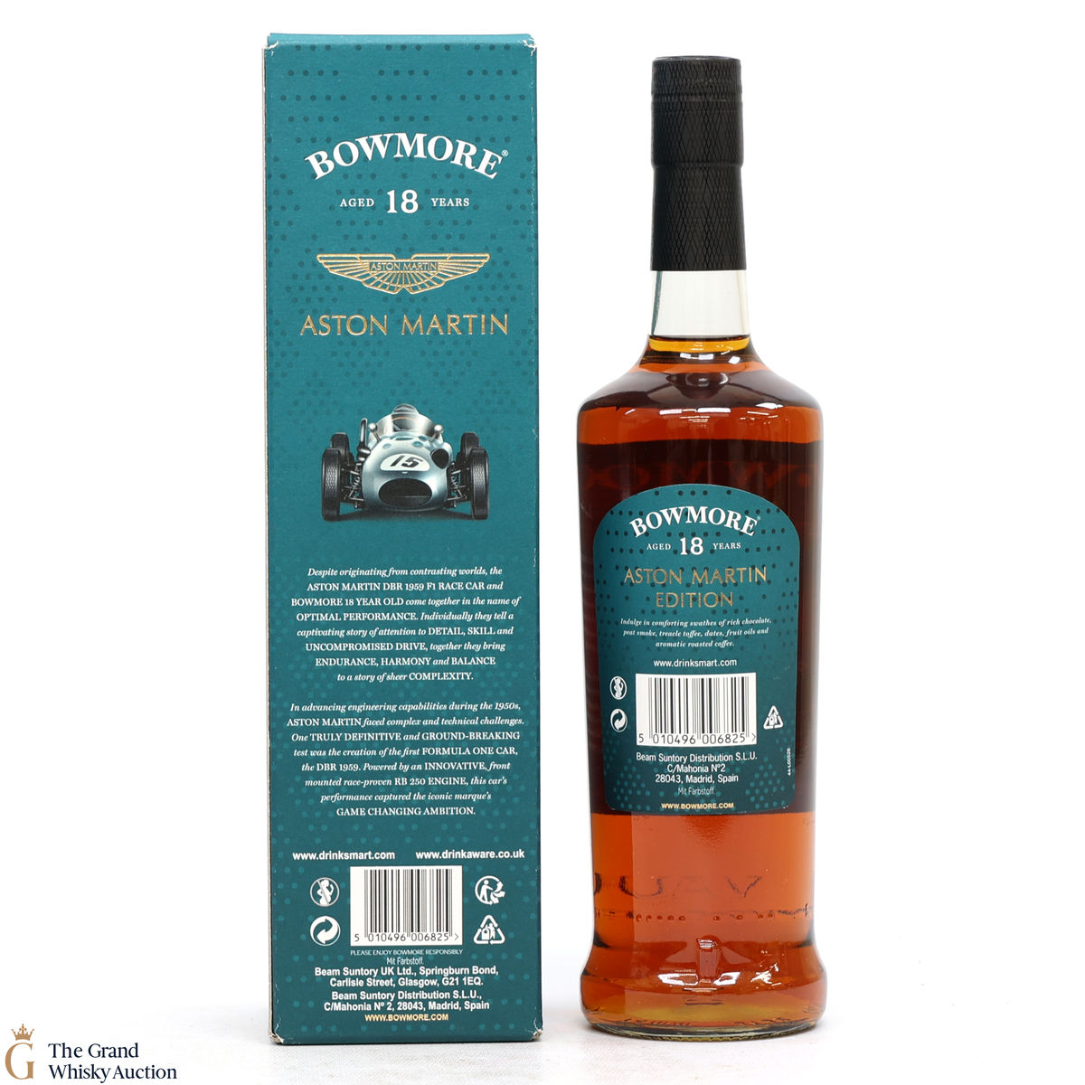 Edition 6 of the Bowmore x Aston Martin collaboration celebrates the iconic Aston Martin DBR 1959 F1 Race Car. Powered by an innovative, front-mounted race-proven RB 250 engine to allow a game-changing performance. A great pairing for the deep and complex 18-year-old, rich maturity from the depths of Oloroso and Pedro Ximenez sherry casks.