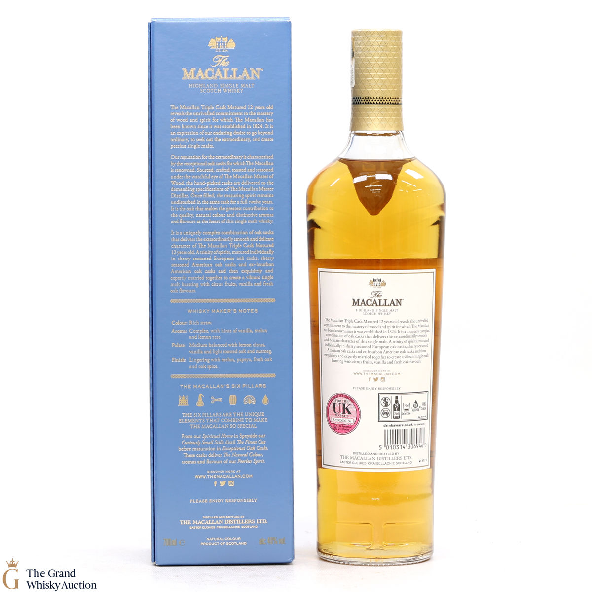 The 12 year old single malt was matured for 12 years and drawn from a combination of European sherry seasoned casks, American sherry seasoned casks and American ex-bourbon casks. It is part of Macallan's Triple Cask range which was launched in 2018, taking the place of the Fine Oak range.
