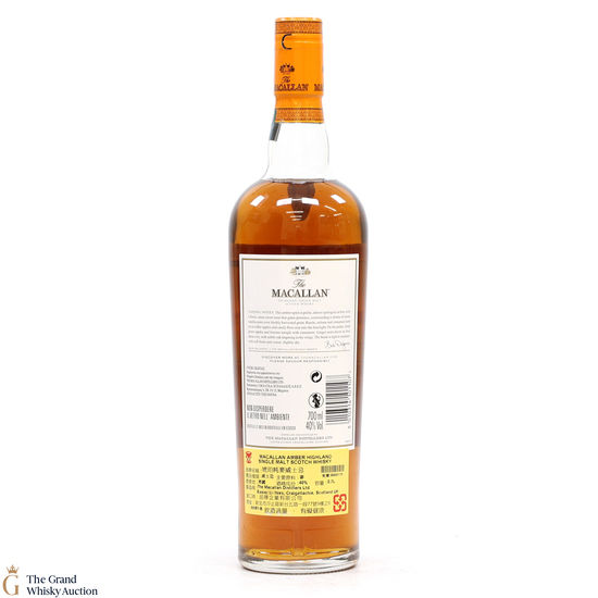 The Macallan Amber forms part of The Macallan 1824 Series which exemplifies their commitment to 100% natural colour, present in each and every Macallan single malt. This non-age statement range of Speyside single malts concentrates on colour; the theory is that by using 100% sherry casks and natural colour, the darker the whisky, the older and more complex.
