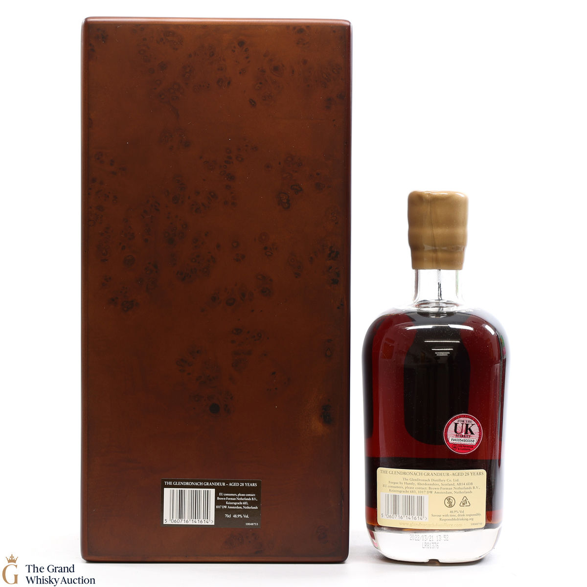 Due to the various ages of bottles and their seals, the condition of liquid is at the buyer's discretion and no claim can be lodged against failure/leakage in transit. Loss and breakage cover is available at 3% of the hammer price as standard. If the lot is not insured, no claim can be lodged against the courier or The Grand Whisky Auction for breakage or loss in transit.