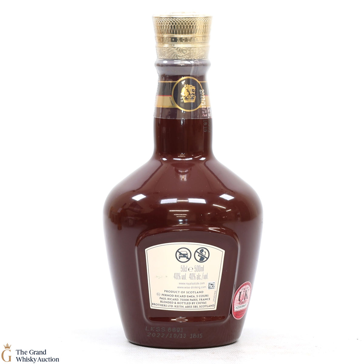 Due to the various ages of bottles and their seals, the condition of liquid is at the buyer's discretion and no claim can be lodged against failure/leakage in transit. Loss and breakage cover is available at 3% of the hammer price as standard. If the lot is not insured, no claim can be lodged against the courier or The Grand Whisky Auction for breakage or loss in transit.